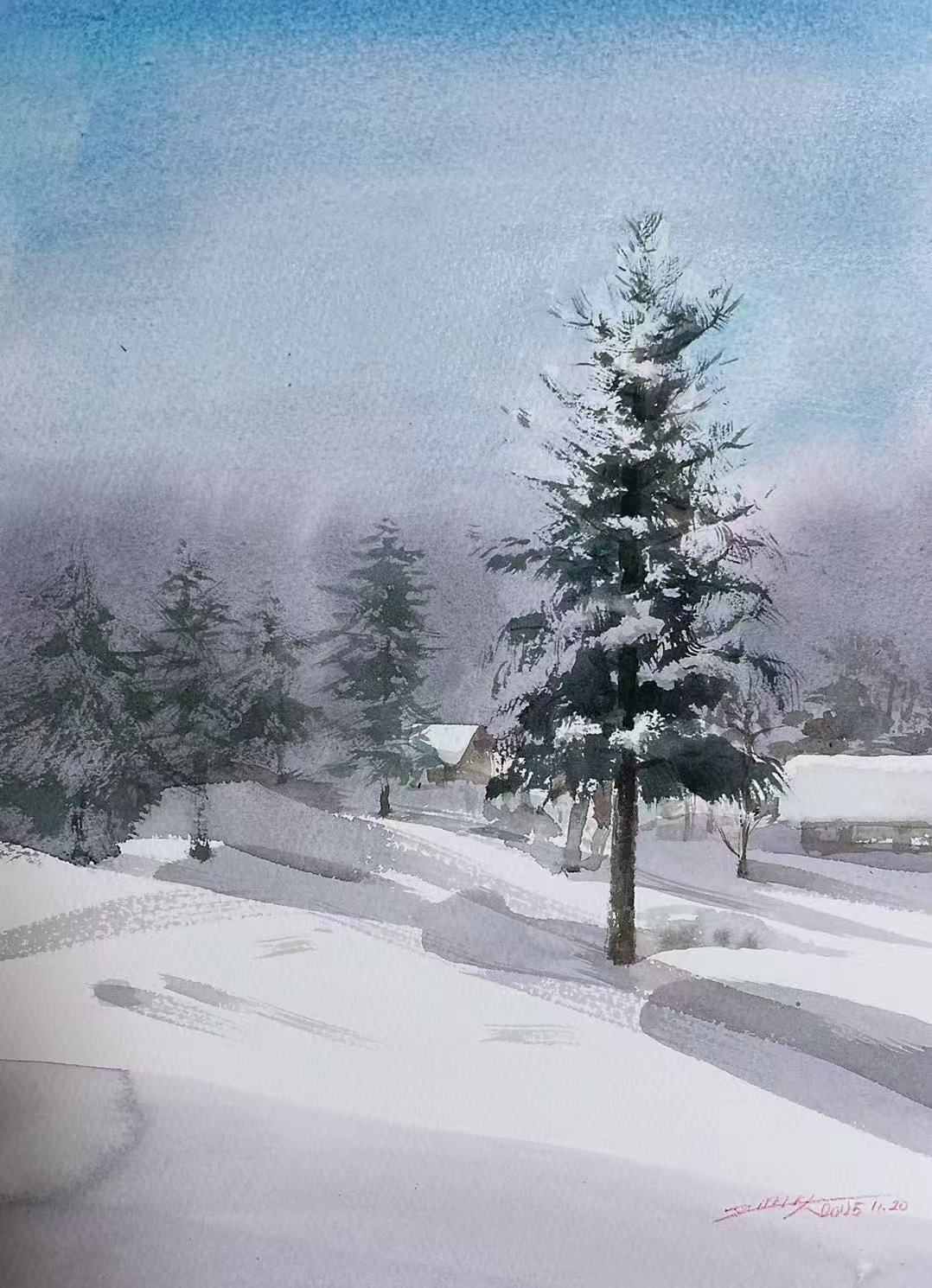 银白色的月亮悬挂在冬天寒冷的夜空,两个人的影子映在冻得发白的路面上,清晰得不像是在夜里。