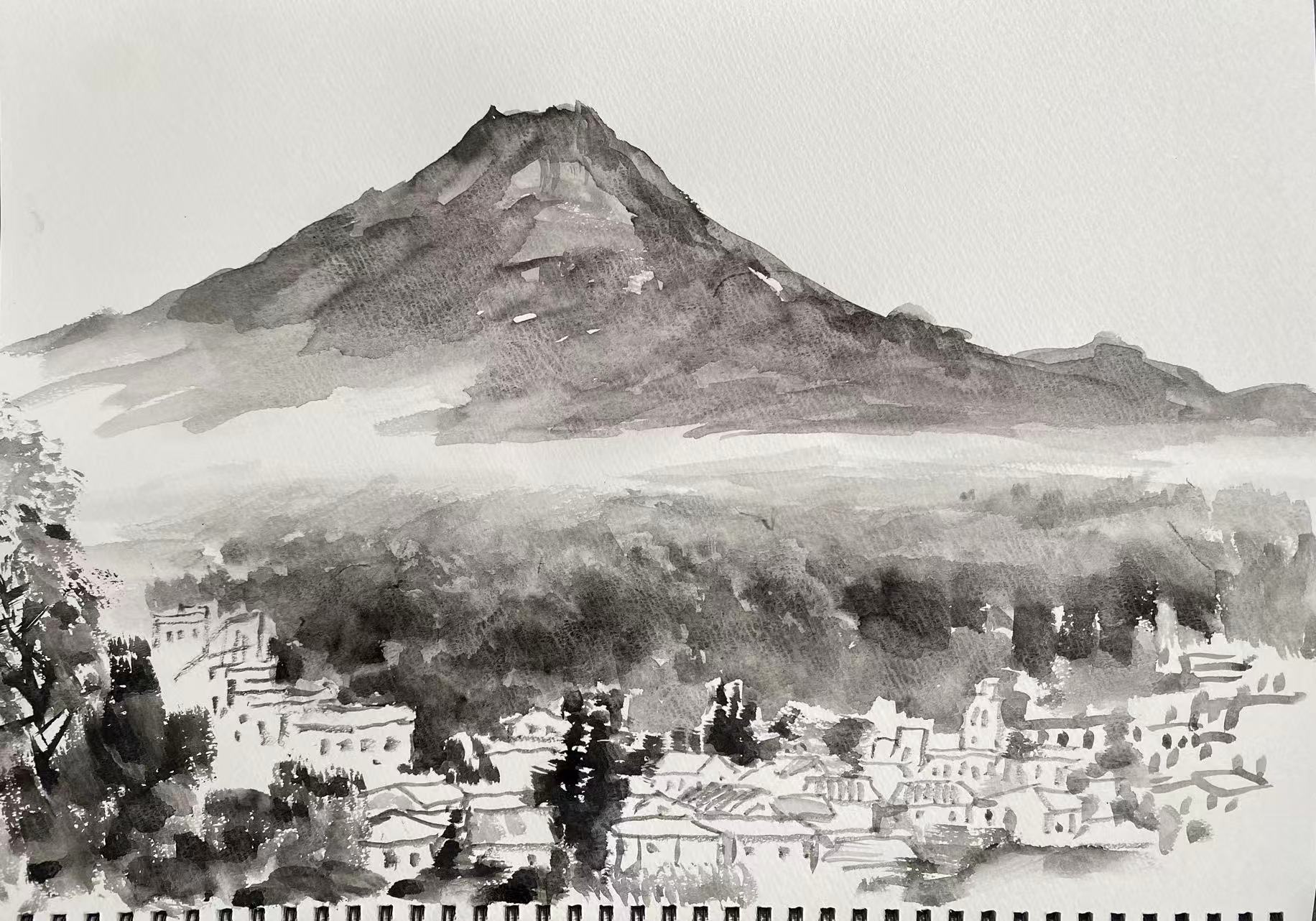 隆起的山坡从温泉旅馆开始向着山上的瀑布延伸,途中有一口清冽的泉水汩汩涌出。