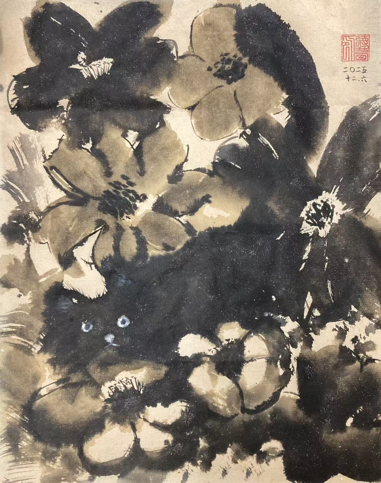 櫻花鳥鳴欠猫伸,喜息兩邦瑞氣新