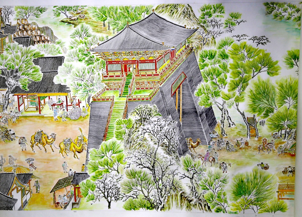 朴永哲钢笔淡彩画《清明上河图》局部之四