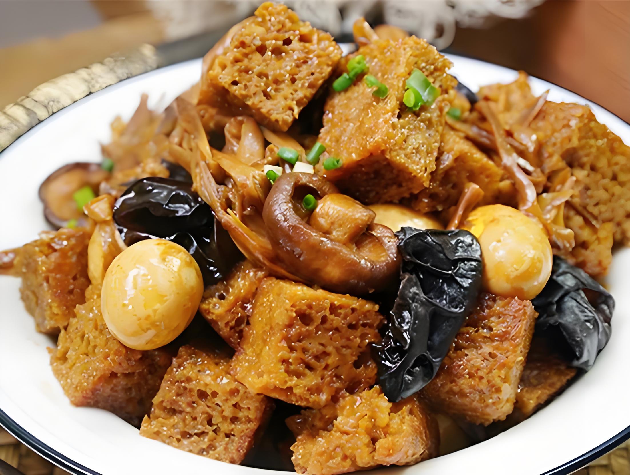 记忆中的那个物资贫乏的配给制时代里,记得奶奶偶尔做的家常烤麸虽然只有单一的烤麸,却让喜欢甜口酱油味的我常常多吃下一碗饭。过年时奶奶加入配给的金针、木耳和香菇,美美地煮成一大碗“四喜烤麸”,馋得我咽着口水催着快开饭。